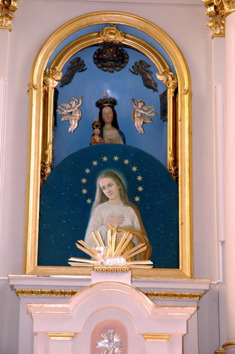 W roku 1610 dominikanie rozpoczęli budowę dużego murowanego kościoła klasztornego. Jesienią 1619 roku, w uroczystej procesji wniesiono do niewykończonej jeszcze budowli kościoła cudowną figurę Matki Boskiej, którą umieszczono we wnęce głównego ołtarza. Wnęka była wyłożona brokatami, obramowana złoceniami i zwieńczona baldachimem z kosztownymi wisiorami. Z upływem lat, figura była obwieszana coraz nowymi wotami, dowodami odebranych łask. Na figurę nałożono szczerozłote korony przyozdobione drogocennymi kamieniami. Wykonano w srebrze płaskorzeźby 6 aniołków, z których jedna para podtrzymywała koronę Matki Boskiej, druga para aniołków podtrzymywała baldachim, zaś trzecia para klęczących ze świecami aniołków była ustawiona u podstawy figury.