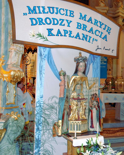 Ks. prałat Stanisław Rogowski - ówczesny proboszcz, dziekan i kustosz sanktuarium, podjął starania o ukoronowanie figury Matki Boskiej i Dzieciątka Jezus koronami papieskimi.